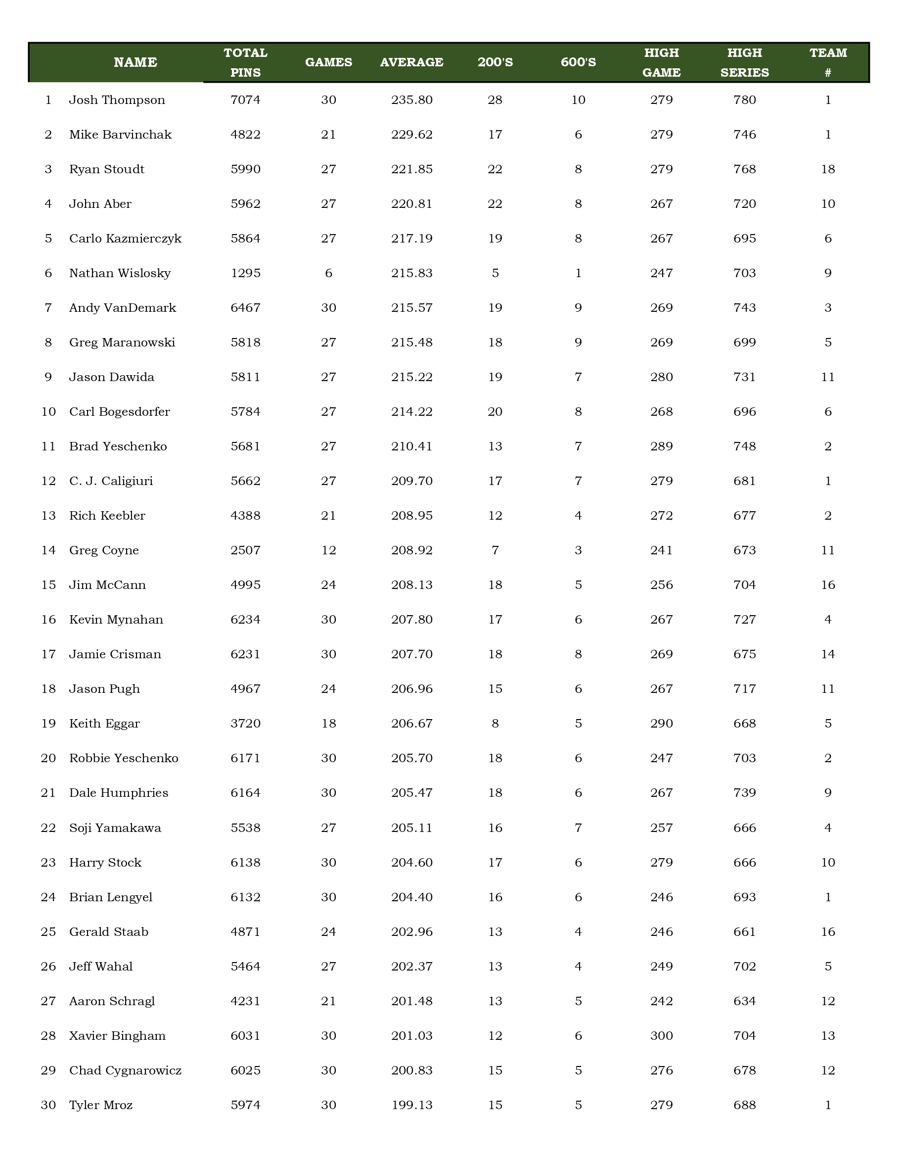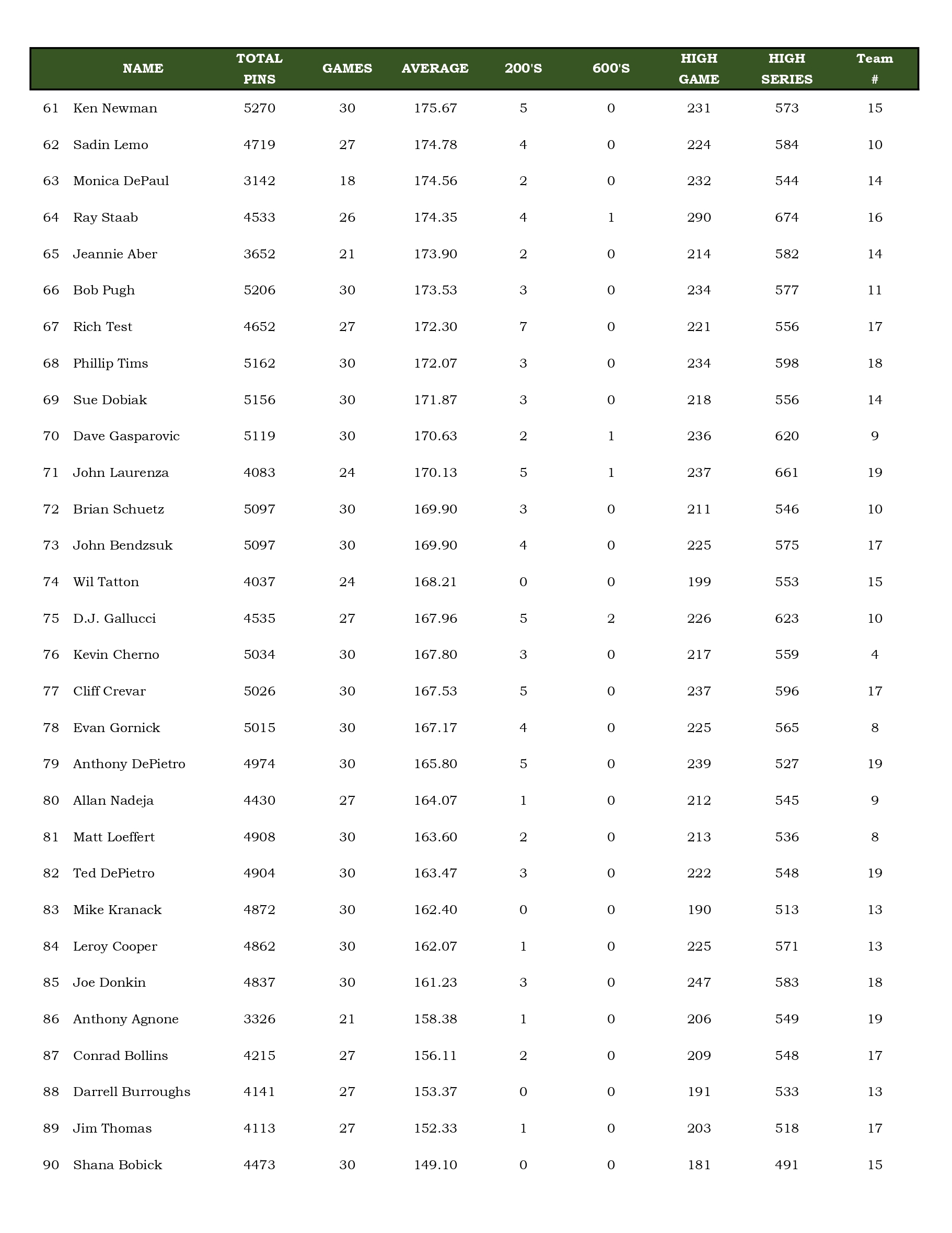 Team Standings Archive