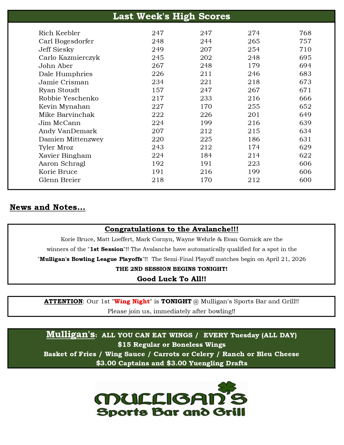 Mulligan's Bowling League