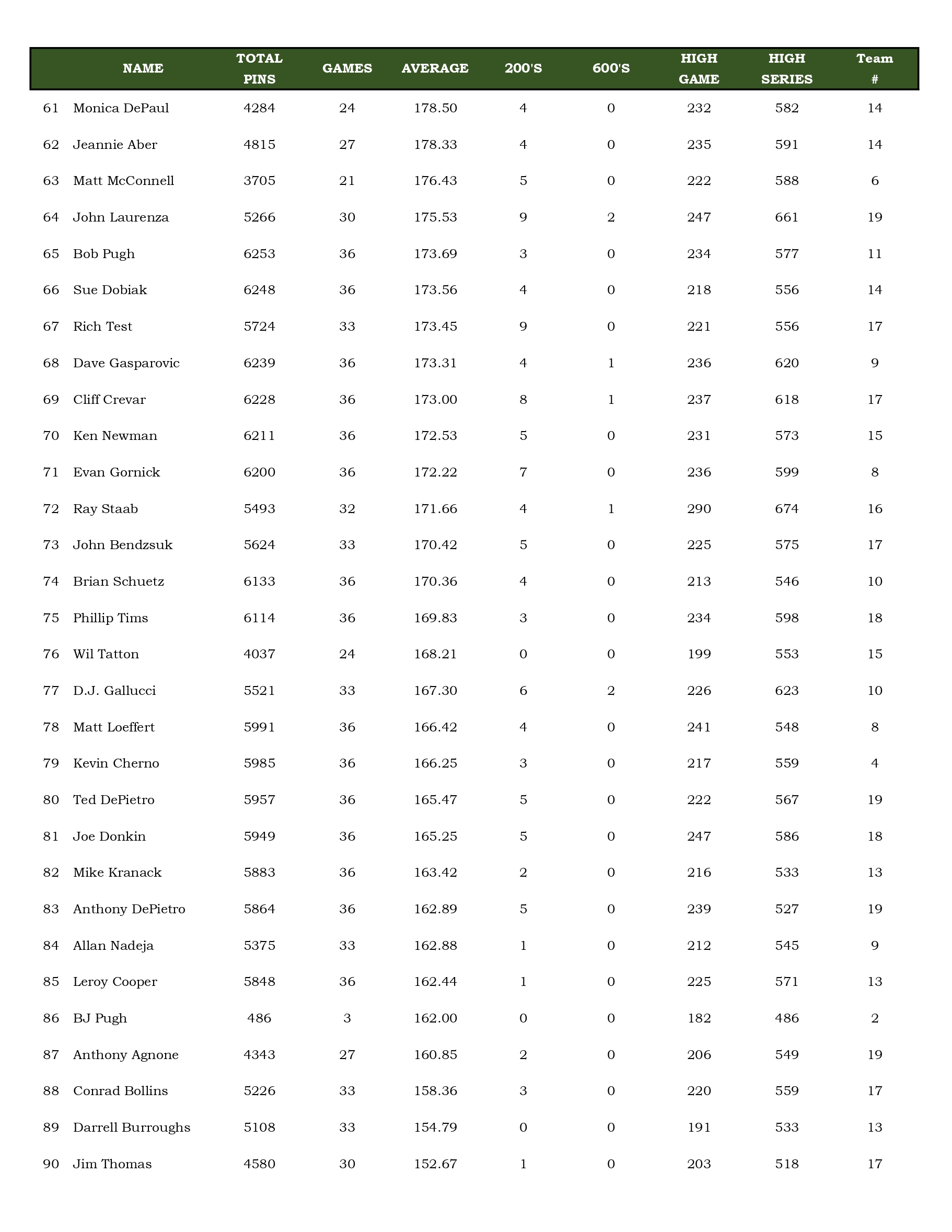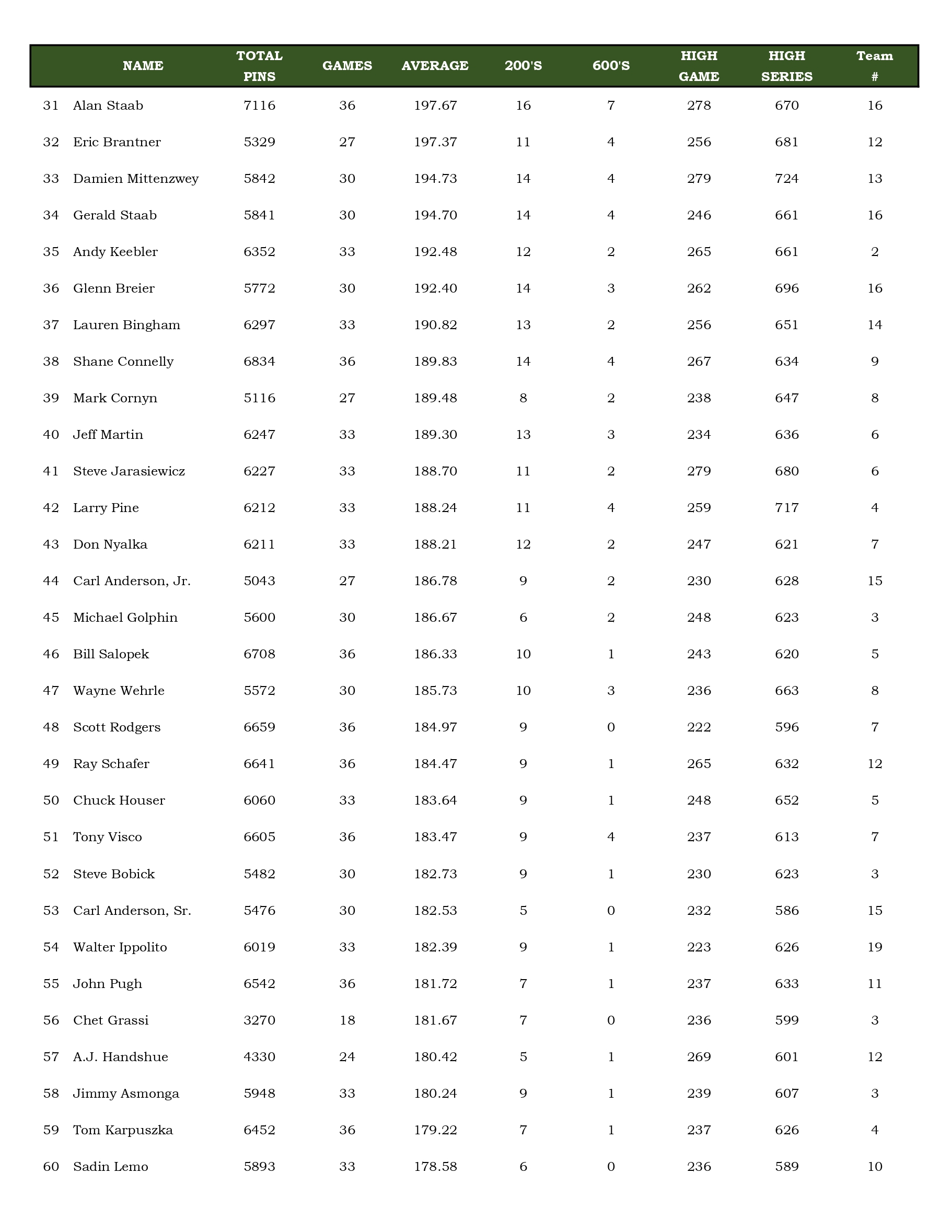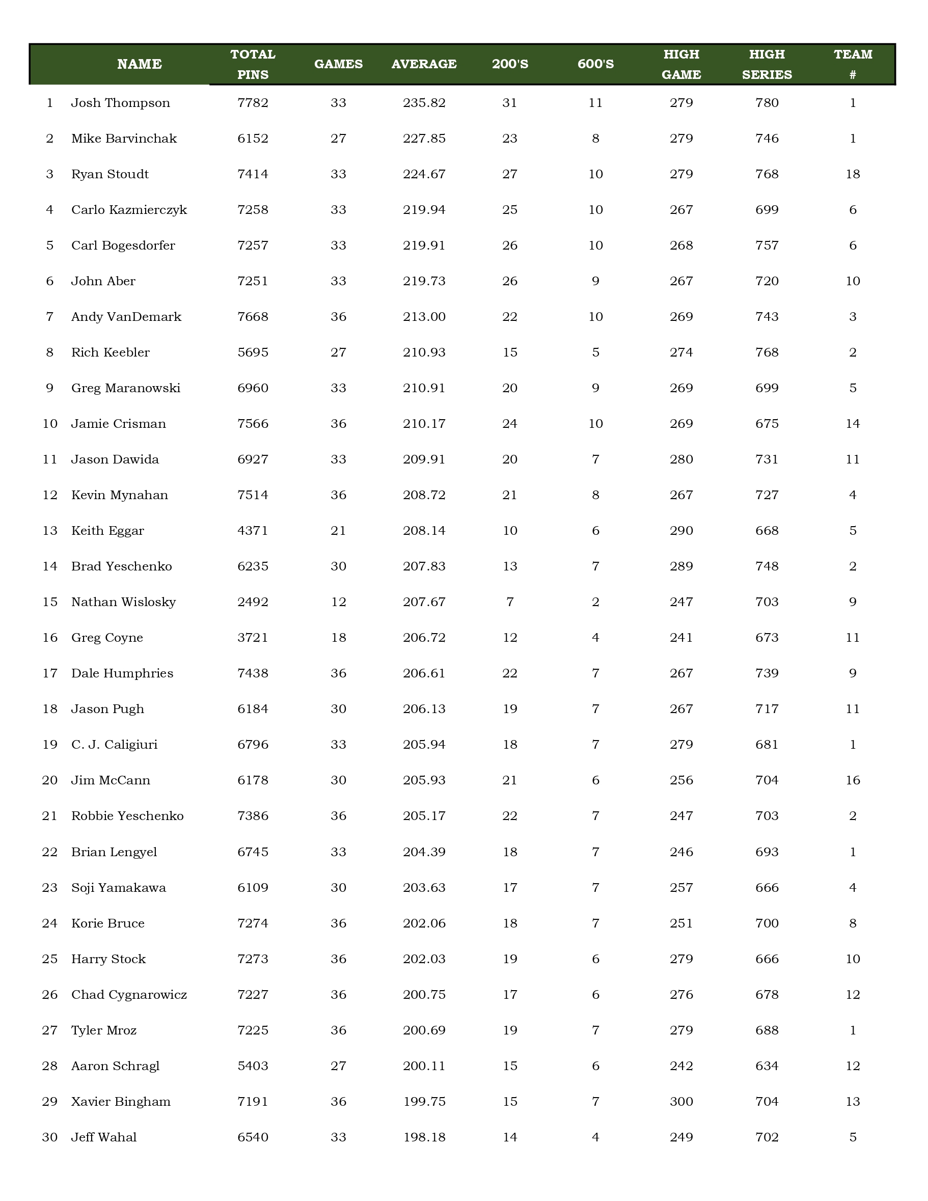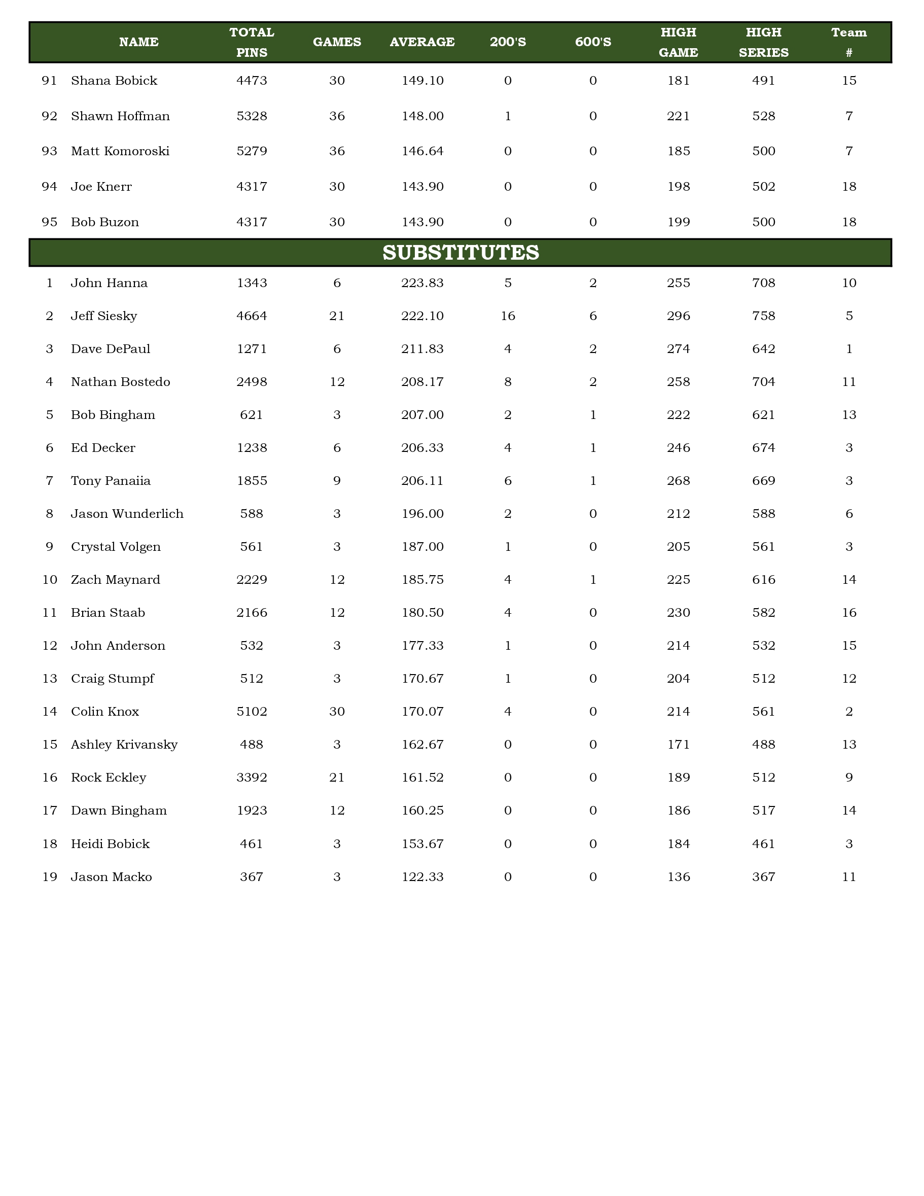 Mulligan's Bowling League