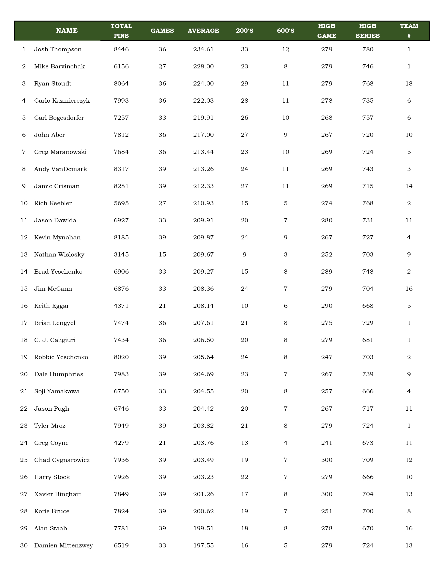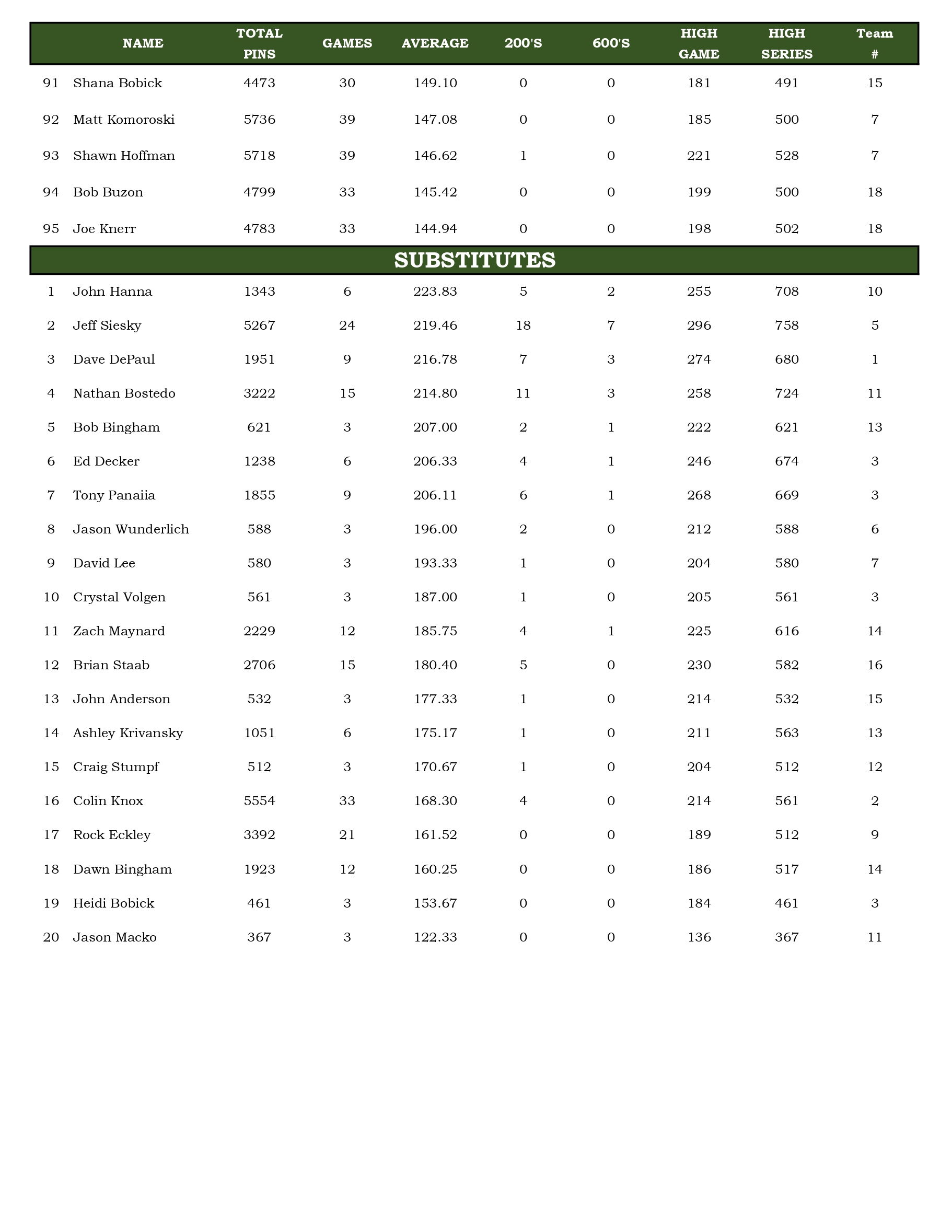 Team Standings Archive