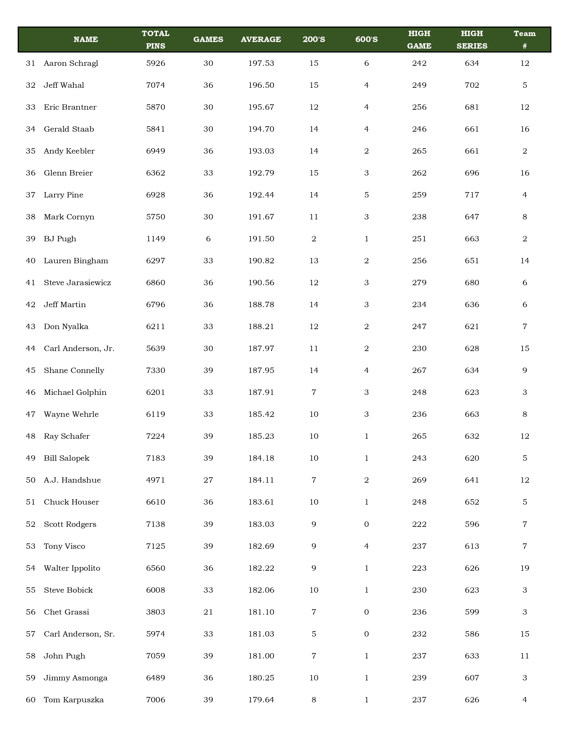Mulligan's Bowling League