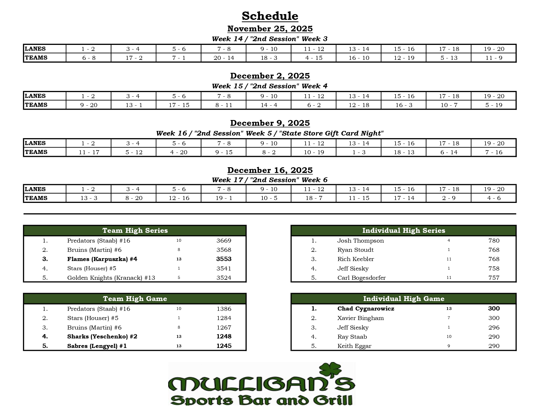 25-26 Season Week 13 (11/18/2025)