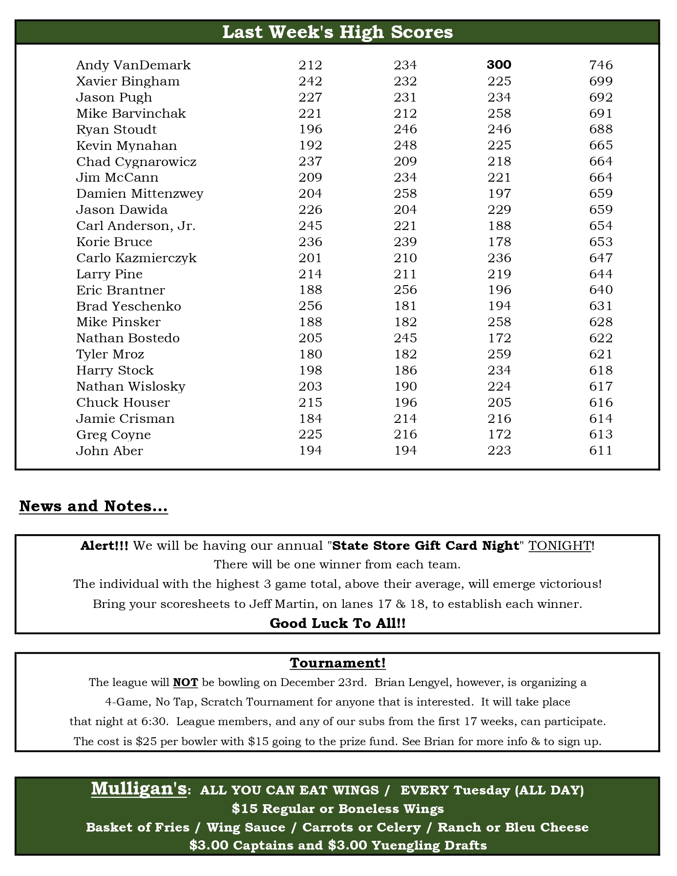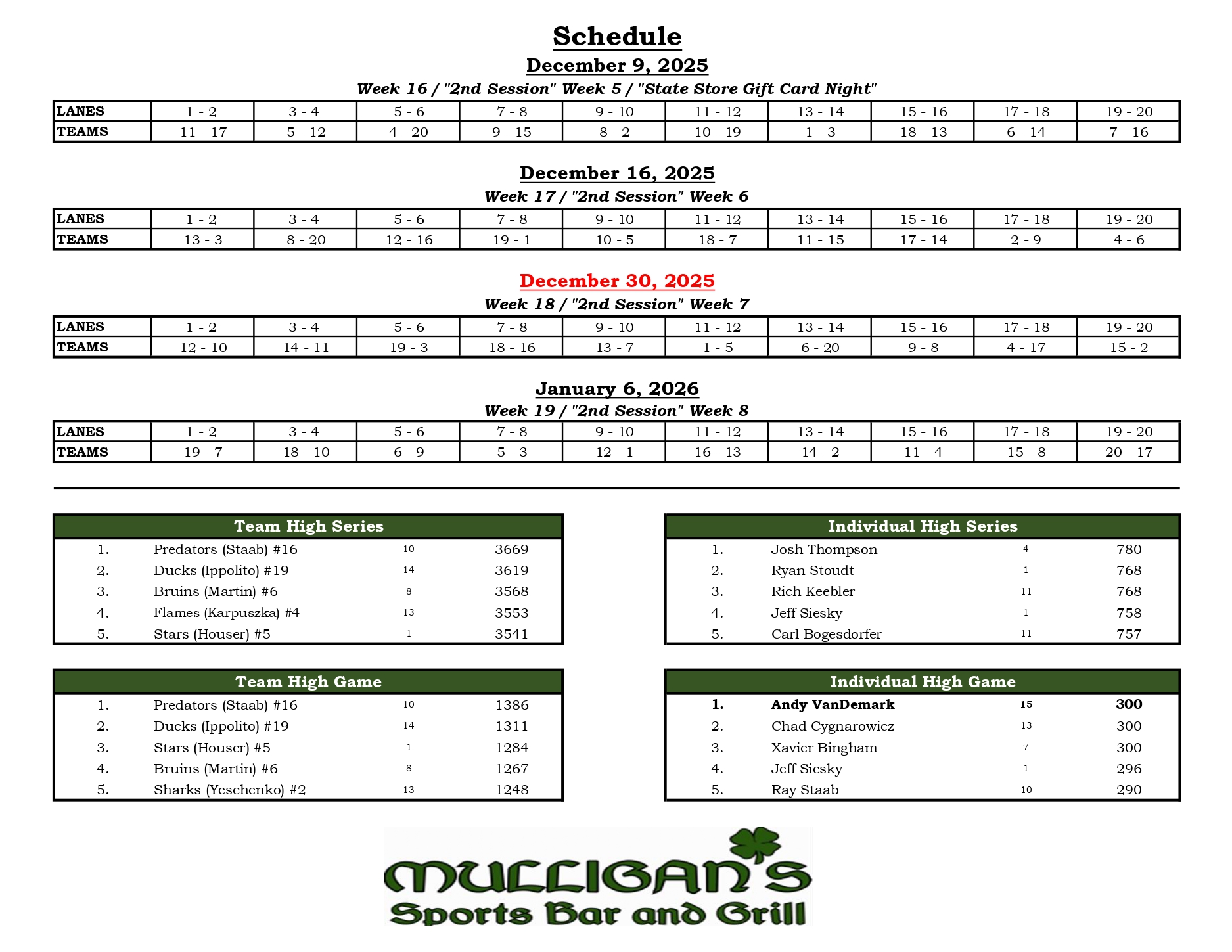 Mulligan's Bowling League