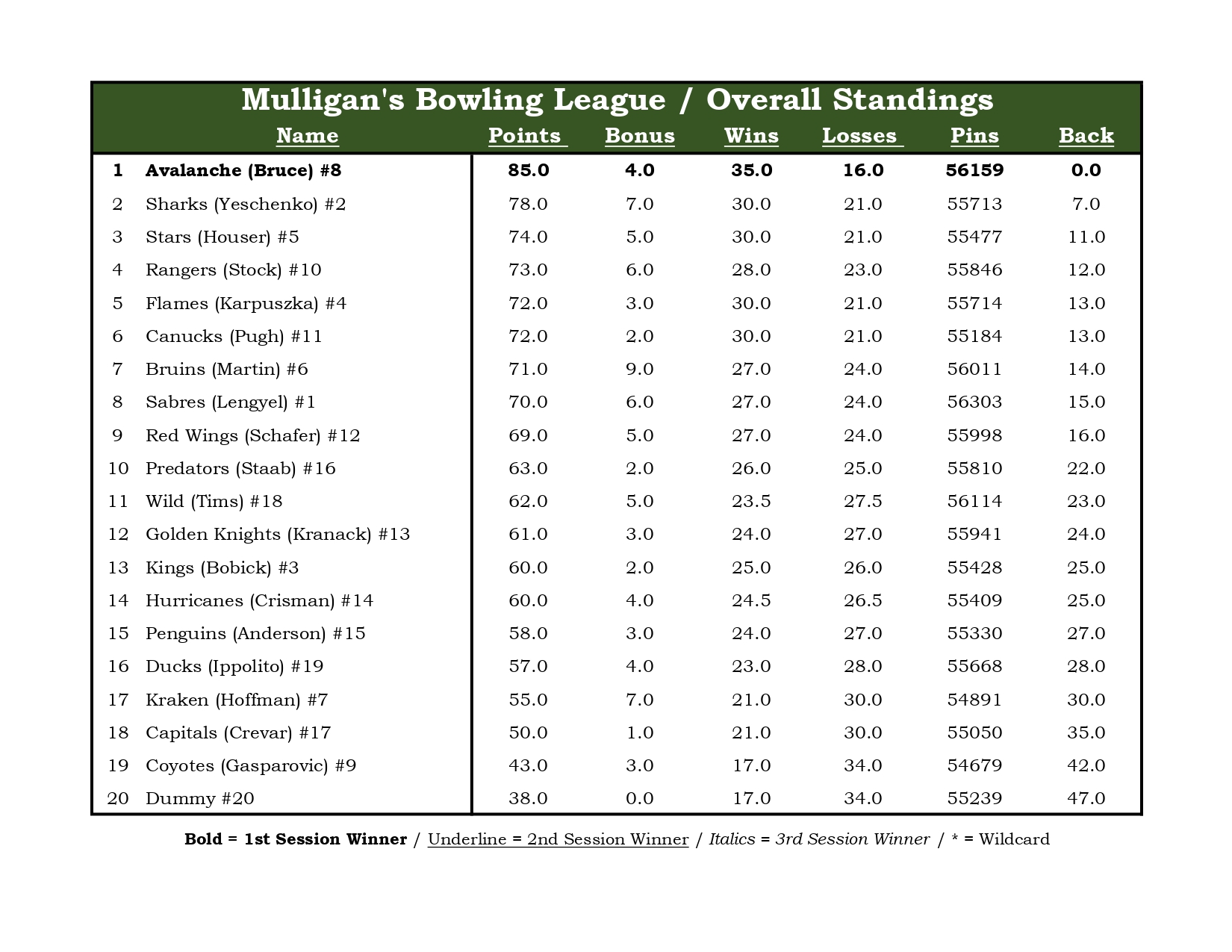 Mulligan's Bowling League