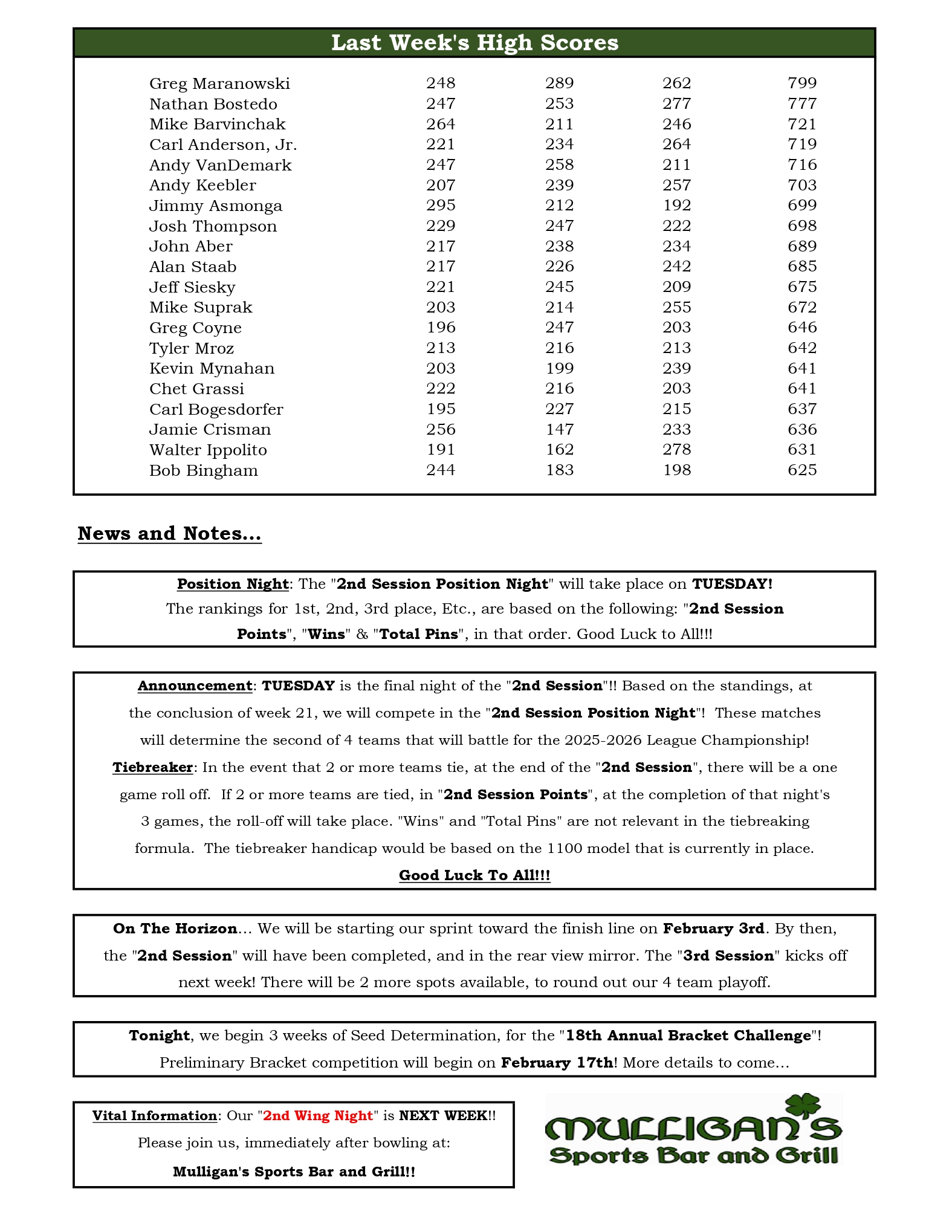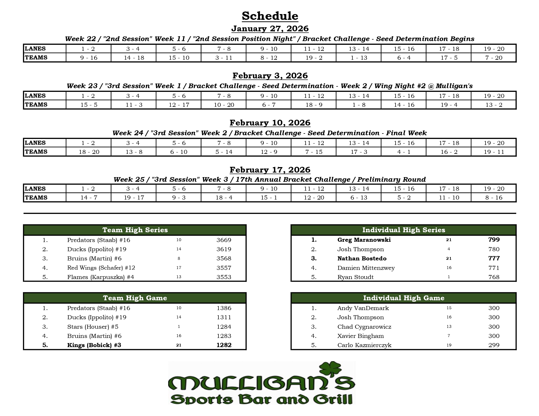 Mulligan's Bowling League