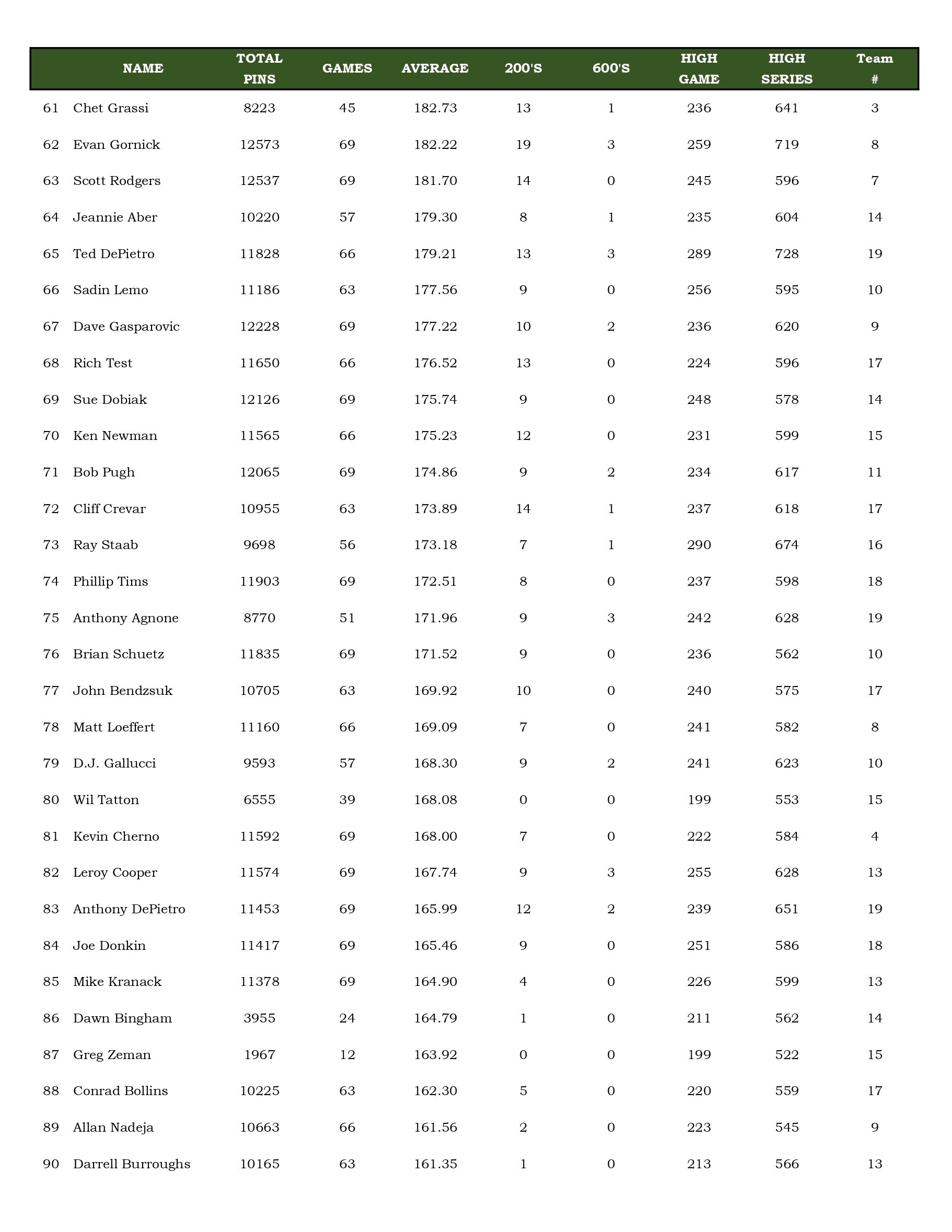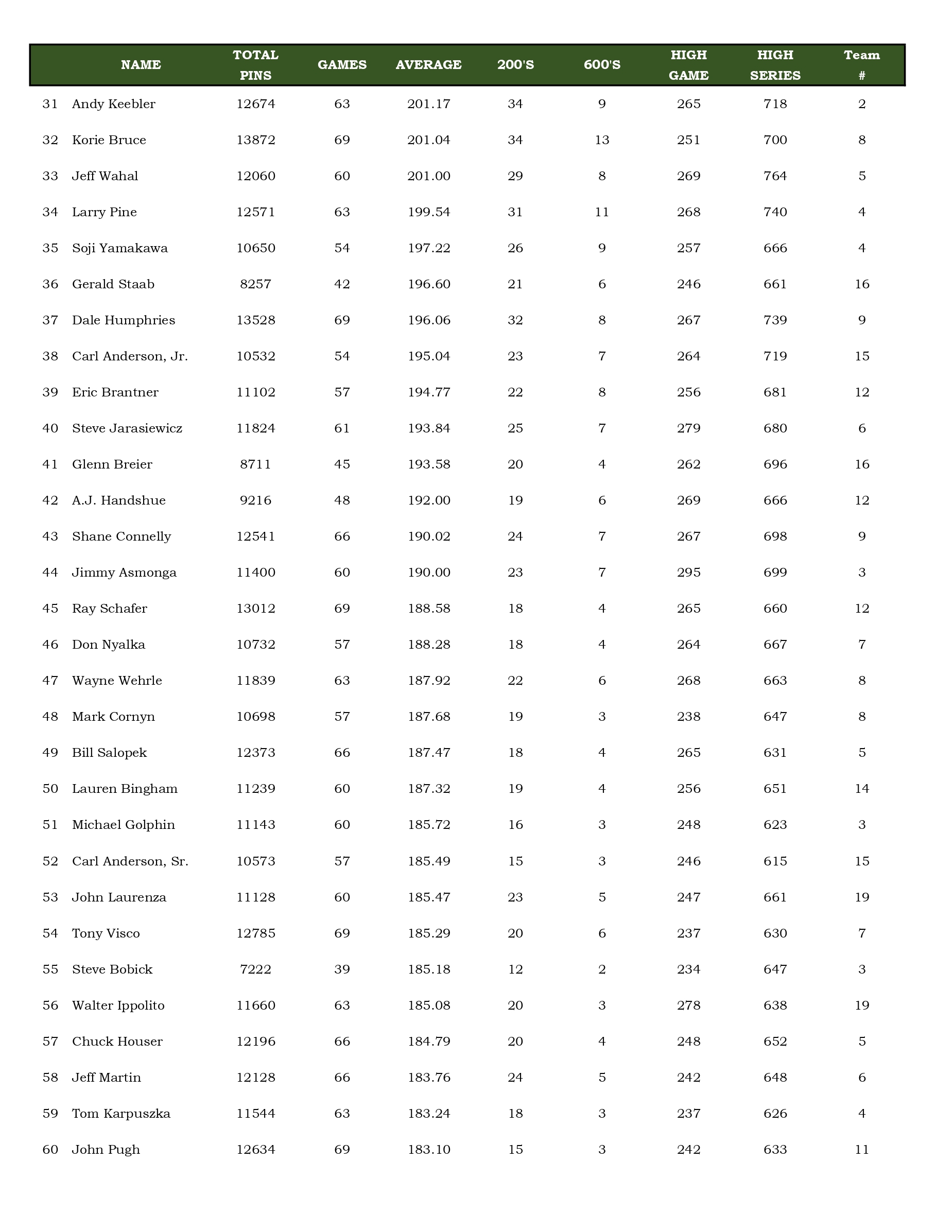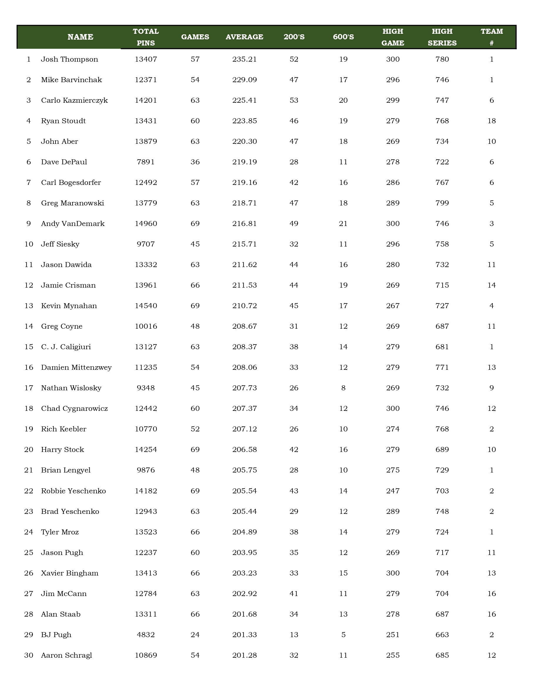 Mulligan's Bowling League