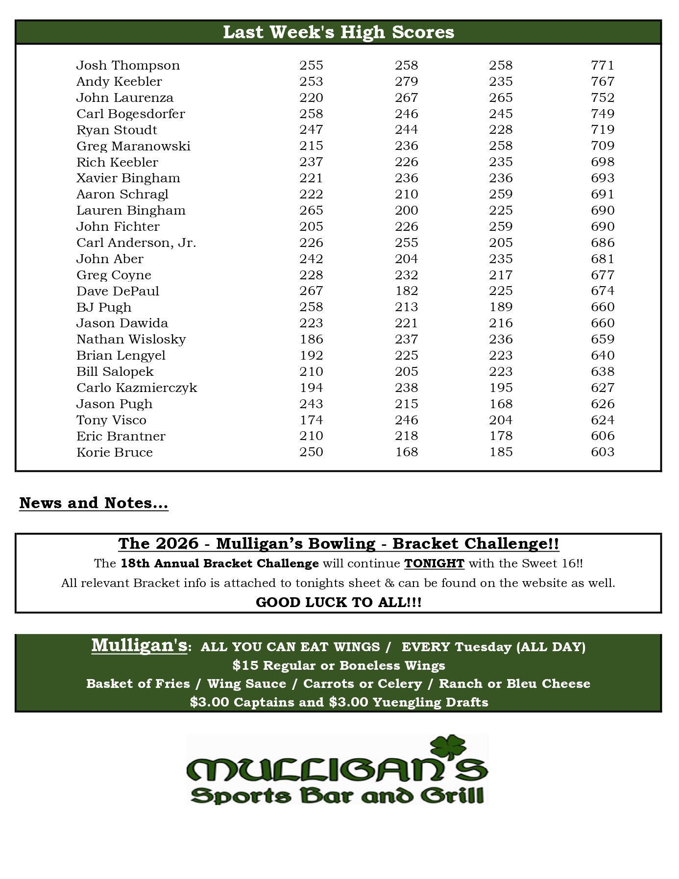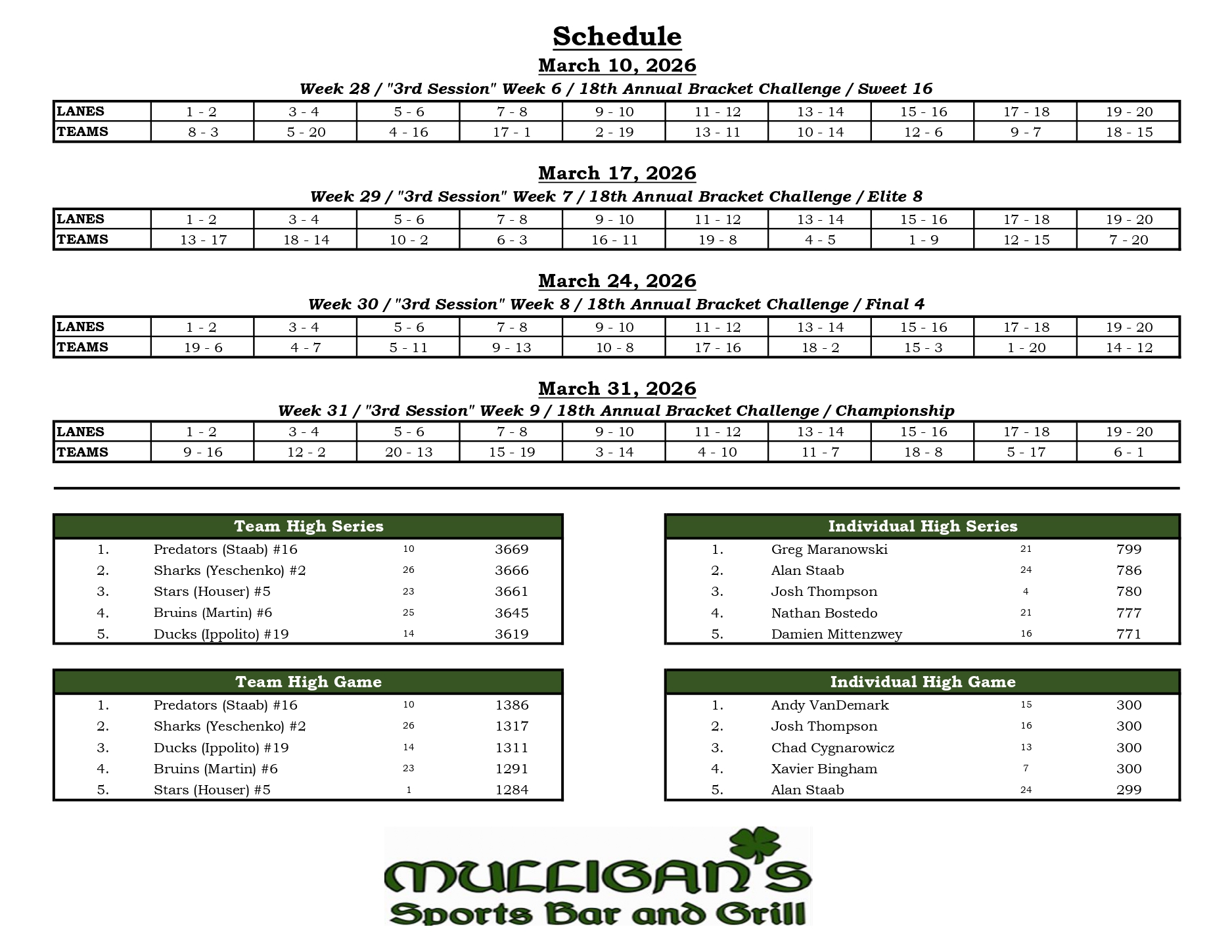 Mulligan's Bowling League