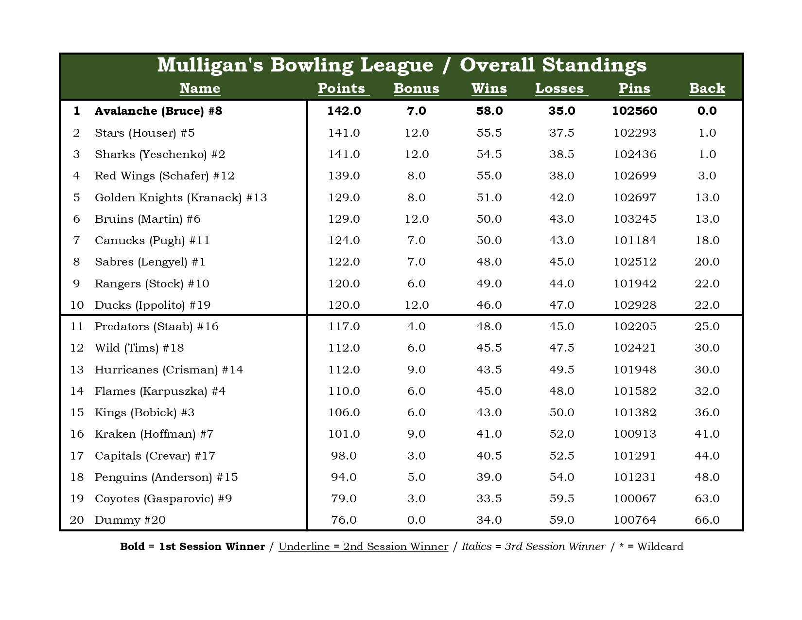 Mulligan's Bowling League
