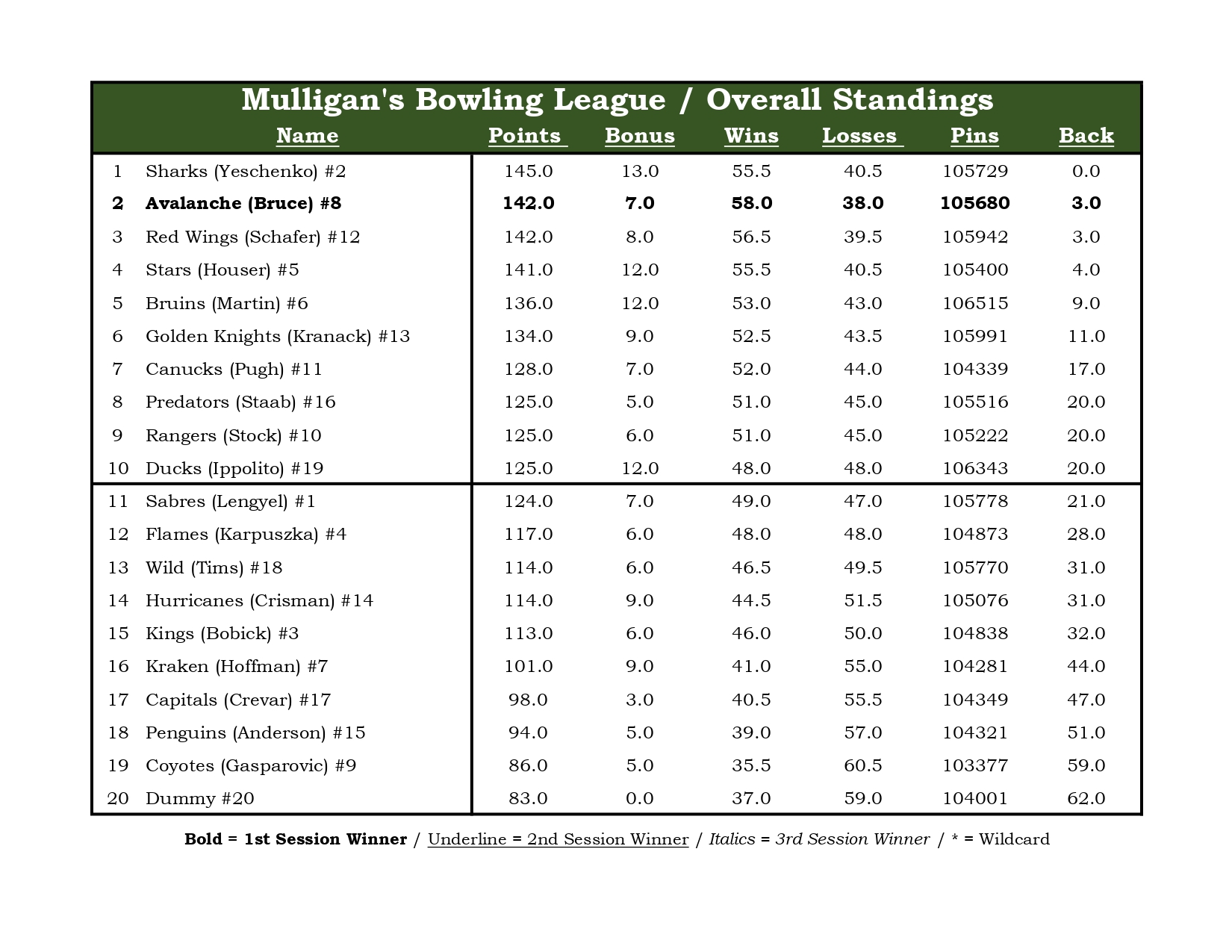 Mulligan's Bowling League
