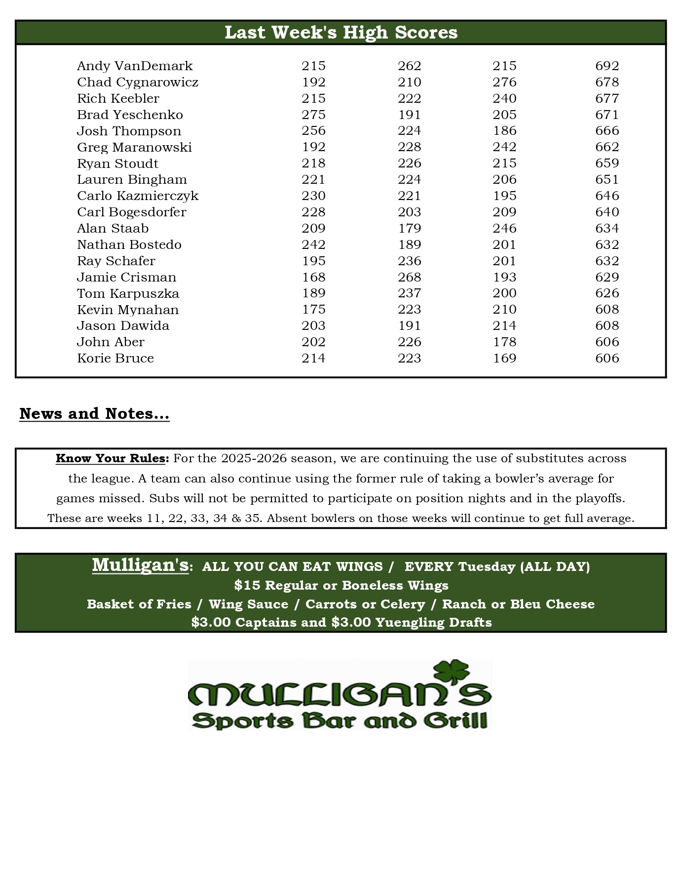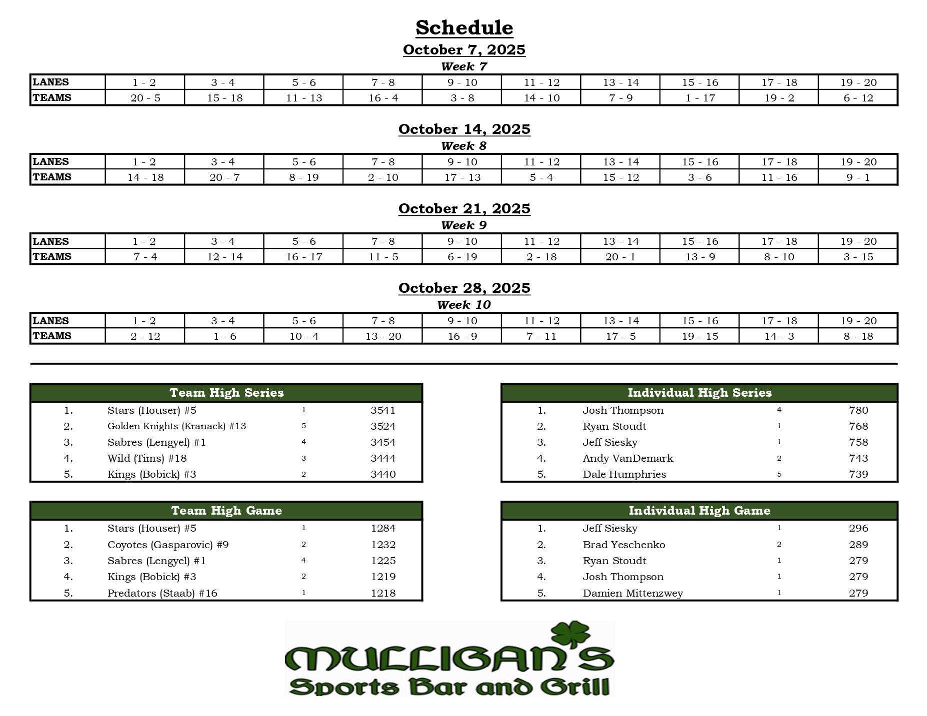 Mulligan's Bowling League